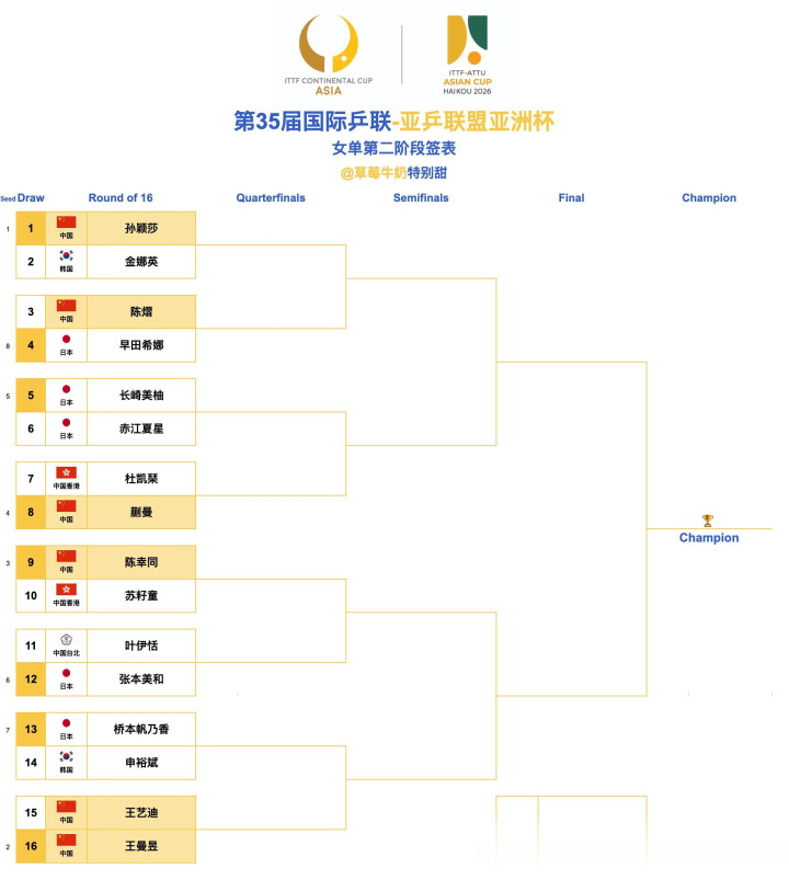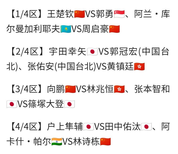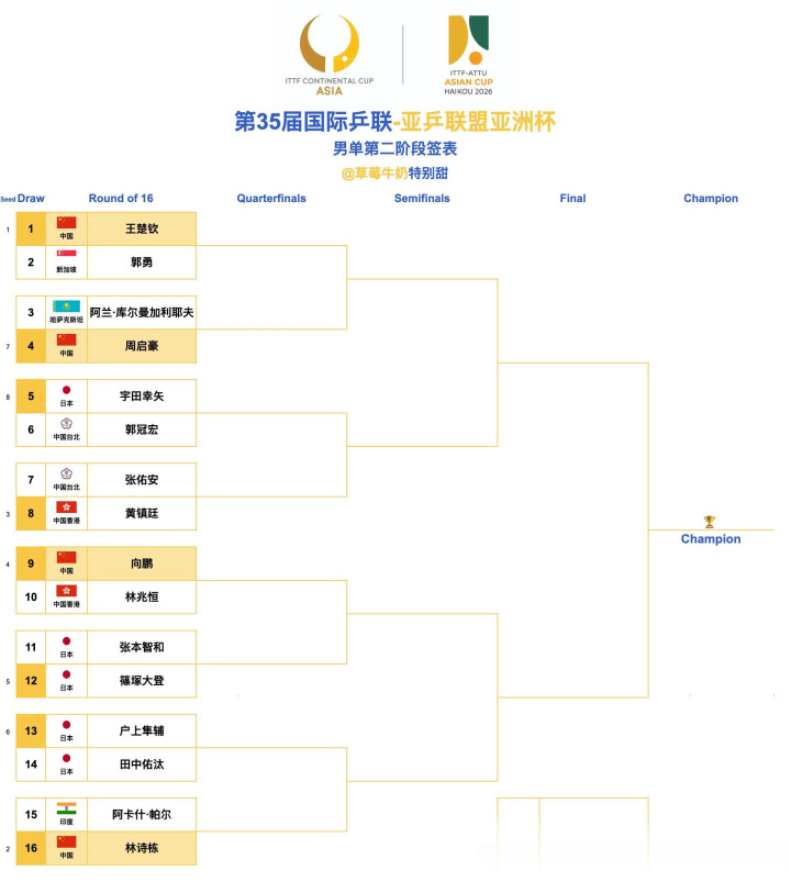 弘大速配 亚洲杯淘汰赛签表, 日本队扎堆, 王楚钦上上签, 黄镇廷有望进四强