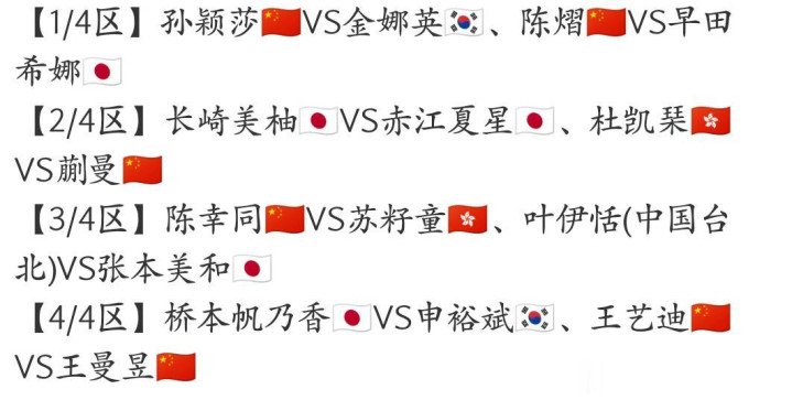 1/8决赛将上演一场中日对决,陈熠对战早田希娜,孙颖莎首轮比赛对阵金娜英。
